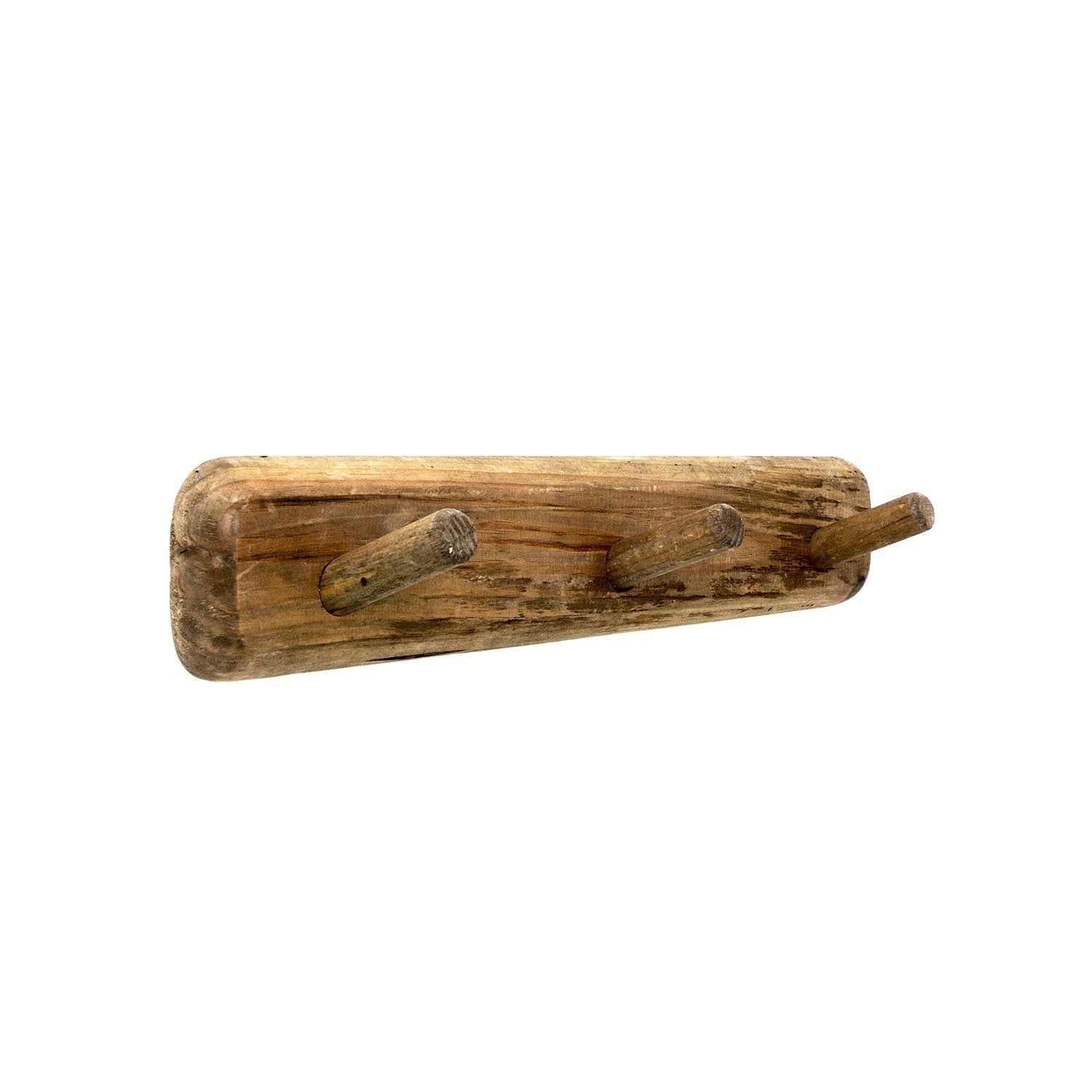 This coat rack is manufactured using 100% recycled, vintage pine. Using modern production techniques, the wood retains its vintage look whilst being transformed into new, useable items. This range of items has a wind-worn, rugged appearance which can only be achieved through years of aging; the life experience of the pine is clearly told in the grain of the wood. The coat rack has three coat hooks arranged horizontally. The slim and practical design is space saving and matches classical and modern interior style. (The wood is preserved and protected through a high temperature drying and pressing process. There are no insects in the wood after processing.)    •	Size: L53cm, W10cm, H12cm